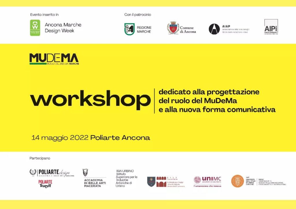 Mudema è un progetto ideato, realizzato e diretto dall’Accademia di Belle Arti e Design POLIARTE di Ancona, partecipato da CityNet di Matelica, C28 di fabriano, CNA e Hi-Tec lab di Ancona e cofinanziato dalla Regione Marche Mudema è al servizio del pensiero e dell’interazione di studenti, docenti, ricercatori e professionisti che intendono avvalersene per performance ottimizzative o di nuova concezione tese al miglioramento della qualità di vita e salute, sicurezza e benessere socialmente diffuso.