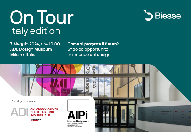 Biesse On Tour, patrocinato da AIPi, mira ad esplorare i temi del design, partendo dal passato per comprendere meglio il presente ed immaginare un futuro più attento al riutilizzo e alla sostenibilità ambientale, attraverso il racconto e l’esperienza di ospiti d’eccezione.