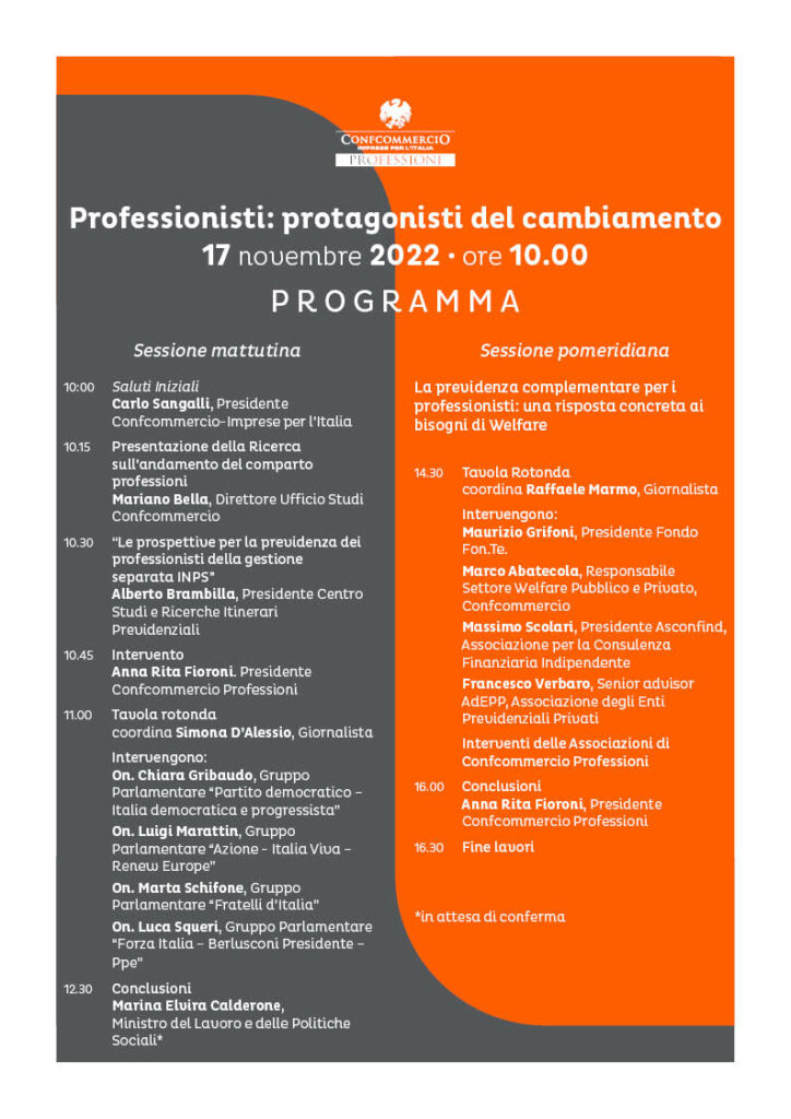 Professionisti: AIPI tra i protagonisti del cambiamento. Convegno nazionale di Confcommercio Professioni Roma 17 Novembre 2022