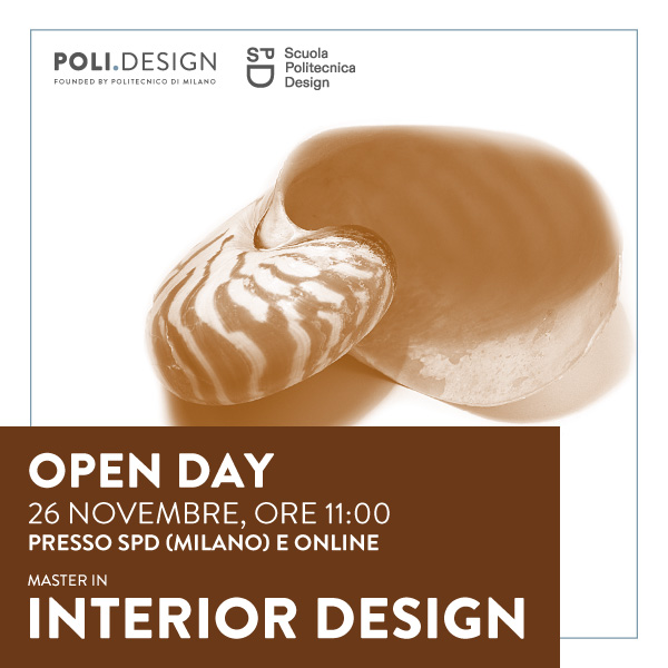 È previsto per sabato 26 novembre, dalle 11:00 alle 13:00, l’Open Day della XX edizione del Master in Interior Design, il percorso formativo del Politecnico di Milano, gestito da POLI.design in collaborazione con SPD – Scuola Politecnica di Design, che mette in comune l’esperienza di due tra le più importanti realtà educative italiane per formare professionisti nella progettazione di interni.
